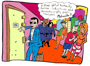 "Johnny Ice: Digital Detective," Volume 1 "Fricassee To Go," Episode 1, May 1, 1996. Published by Secret City Documentia, 127 Riley Street, East Sydney, NSW, 2010, Australia. Copyright &Copy; 1996 Secret City Documentia. All Johnny Ice characters, the distinctive likenesses thereof, names and related elements are trademarks of Secret City Documentia. All rights reserved. No similarity between any of the names, characters, persons, and/or institutions in this webcomic with those of any living or dead person or institution is intended, and any such similarity which may exist is purely coincidental. Downloading and printing is fine as long as no commercial gain is involved.